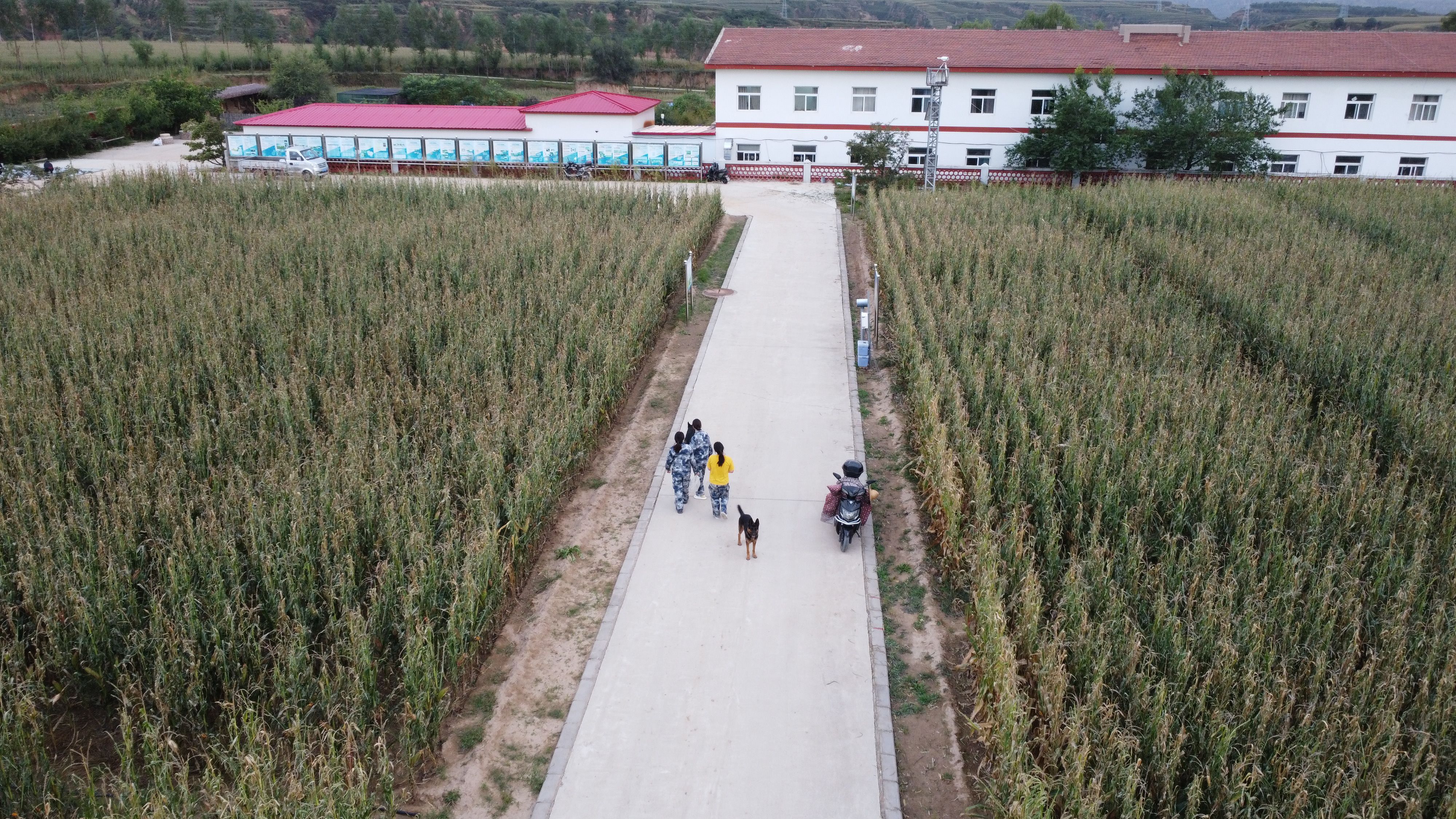 9月26日,山西寿阳站试验田中,几个常驻的学生走过田间路。新京报记者 周怀宗 摄