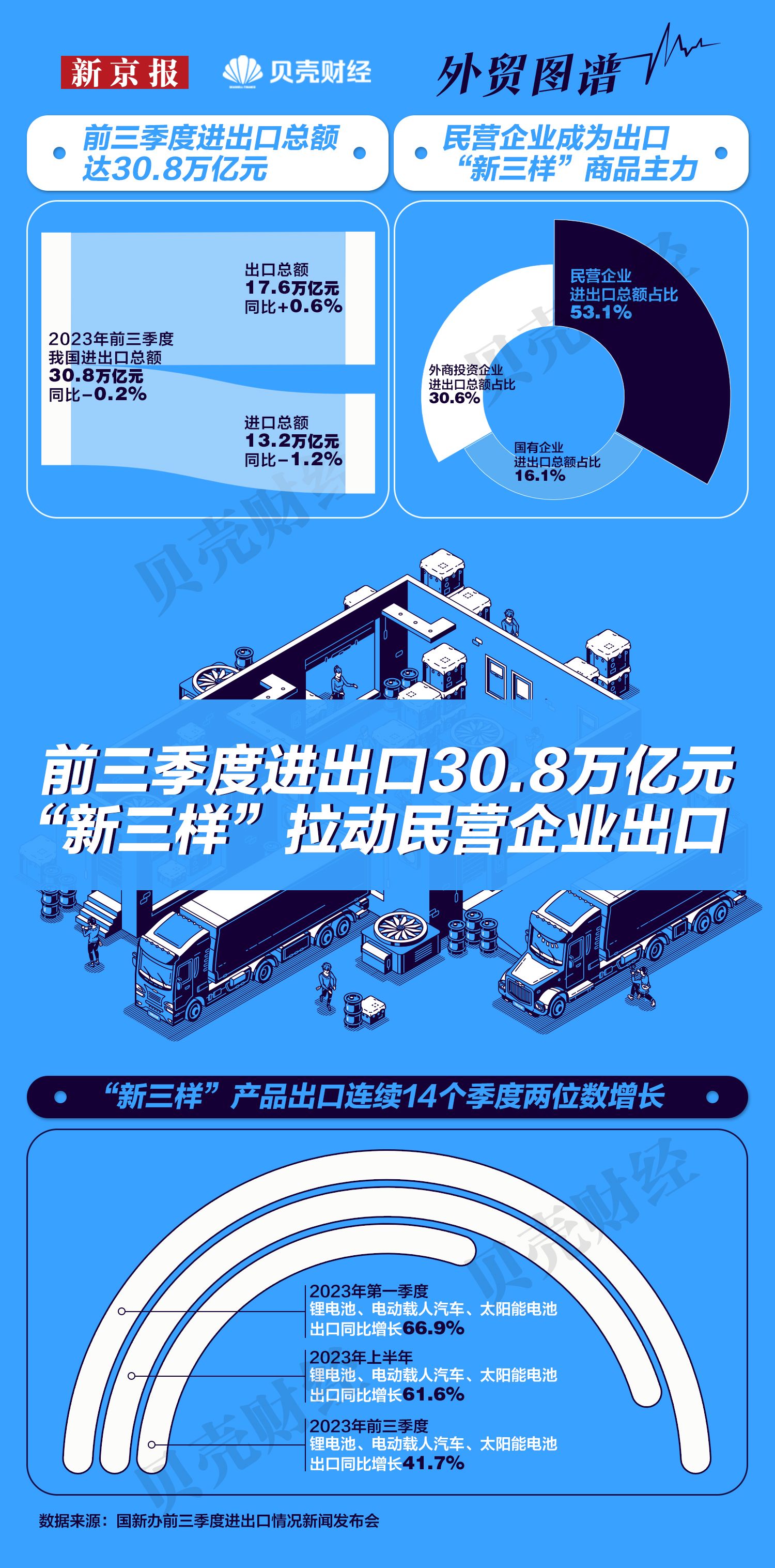 外贸图谱|前三季进出口30.8万亿元 “新三样”拉动民企出口