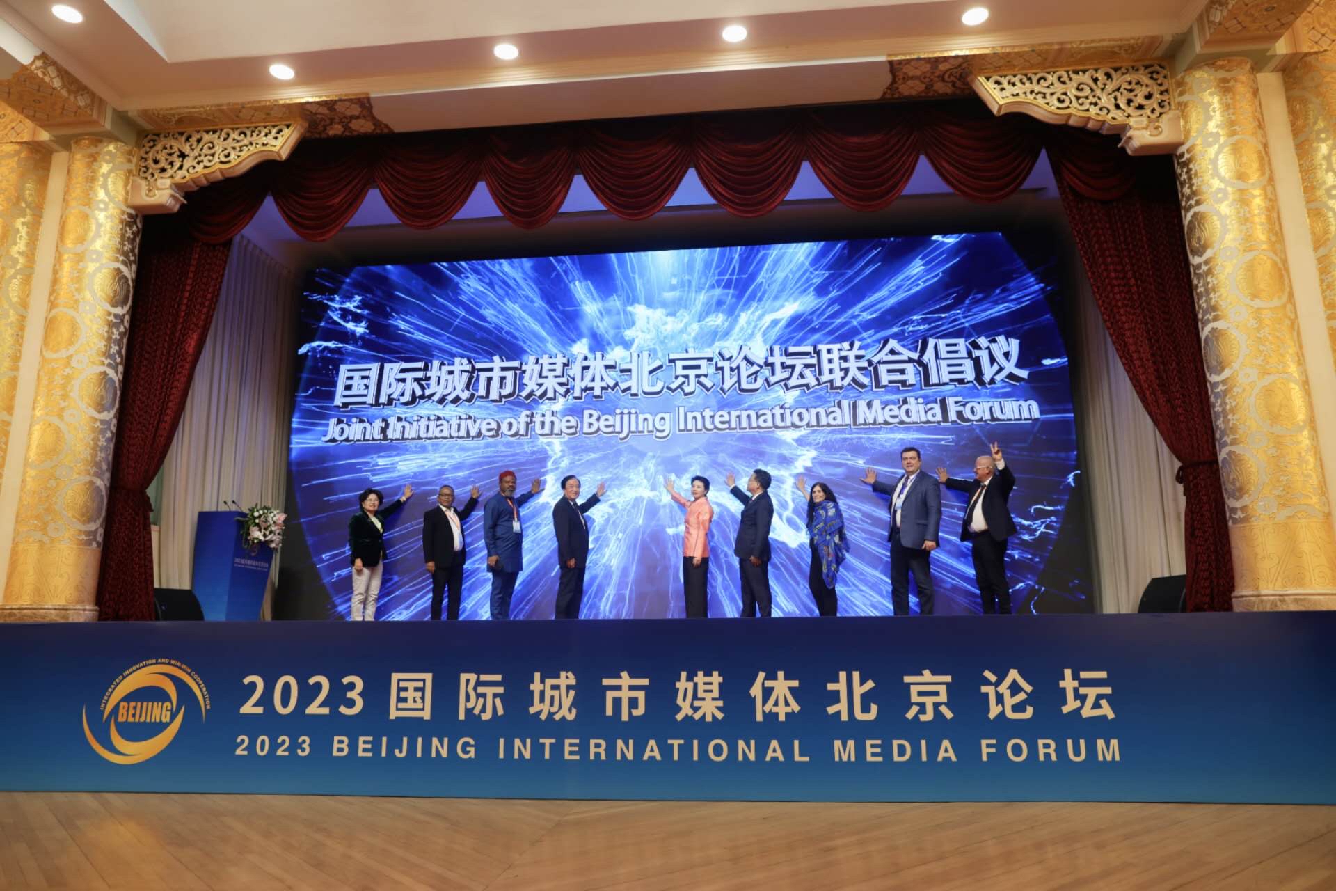 嘉宾共同发布《国际城市媒体北京论坛联合倡议》。新京报记者 浦峰 摄
