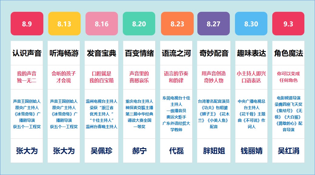 培训课程由四川人民艺术剧院国家二级演员李淼,四川广播电视台一级播音员周泳汐和声音王国创始人张大为3位专业老师精心打造,既考虑到了视障儿童的学习特点,又巧妙融入了声音表演艺术所需的各方面知识。培训采取了线上线下结合的方式,包括8次线上直播、2天线下集训和2天专辑录制。来自江苏、浙江、四川、广东等全国各地的45名视障青少年在线完成了内容学习和作业打卡,他们在专业老师的指导下,系统地学习了呼吸训练、吐字归音、情感代入、角色创作、诗歌朗诵、万能主持等声音表演技能,部分表现优异的学员还应邀参加了线下集训和专辑录制。