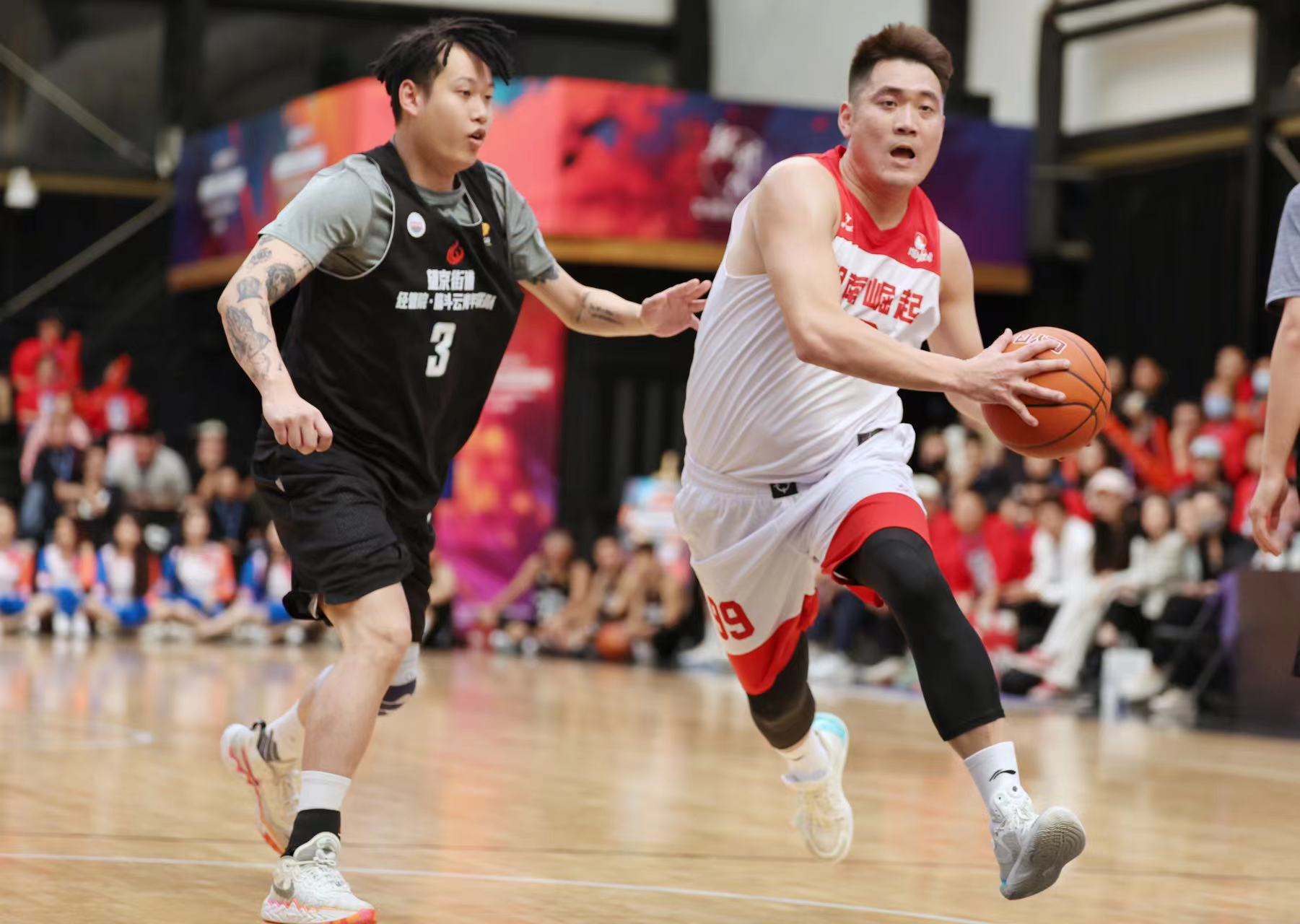 2023首届CYBA朝阳篮球联赛决赛现场,篮球队员们正在球场上角逐。 新京报记者 王飞 摄