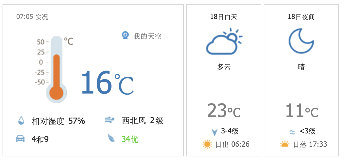 今天白天多云转晴,北风三四级,阵风六级左右,最高气温23℃;夜间晴间多云,北风二三间四级,最低气温11℃。
