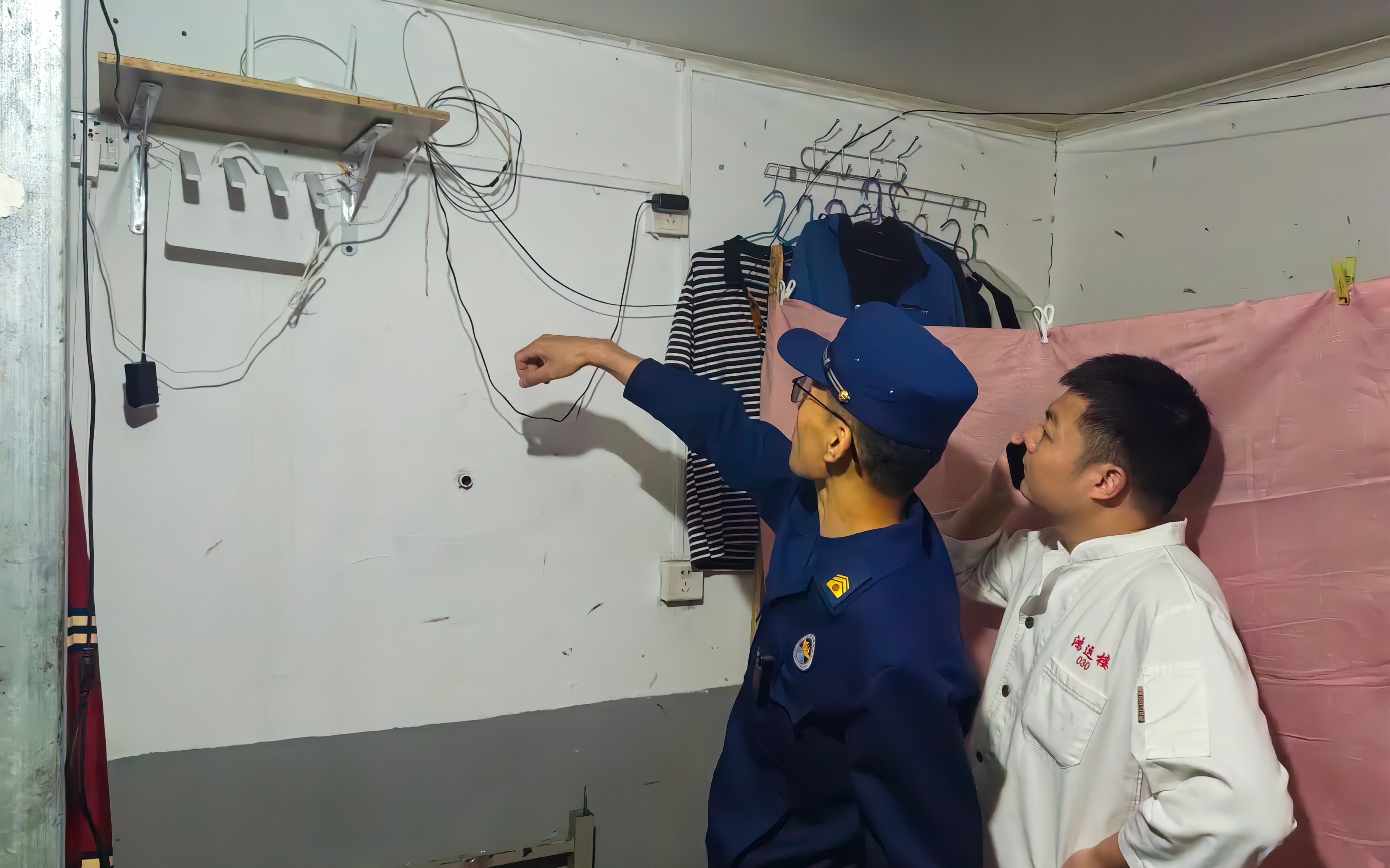 消防夜训队成员正在餐厅进行夜查。图源:西城区消防救援支队