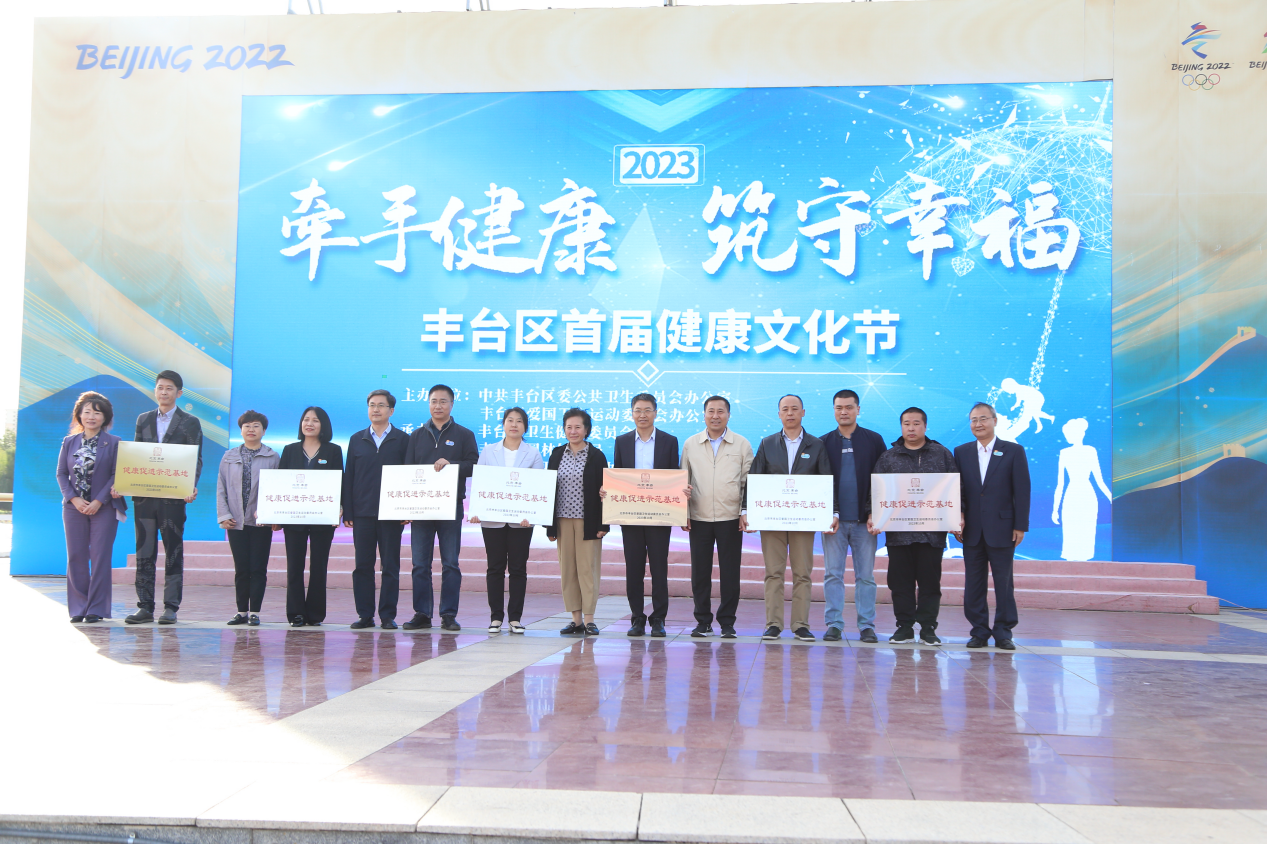 丰台区首批7家健康促进示范基地现场授牌。丰台区供图
