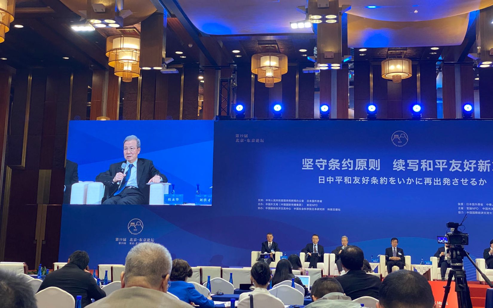 今年的论坛以“亚洲地区稳定与世界和平合作:中日两国责任——中日和平友好条约缔结45周年之思考”为主题,来自中日两国各界的嘉宾就维护和平秩序、增进政治互信、深化经贸合作、强化安全保障、明确媒体责任、发展数字经济、增进青年交流等重要议题展开讨论。
