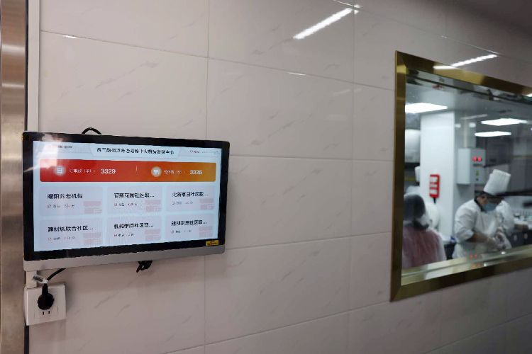 电子屏展示当天各社区的订单数。目前,中央厨房社区养老助餐服务网络已经形成,通过1个中央厨房,覆盖28个社区居民步行可及的助餐服务网点、为N个有需求的老年家庭上门送餐,织起了覆盖全地区、涵盖各类群体的生产、品控、订餐、送餐等服务网。
