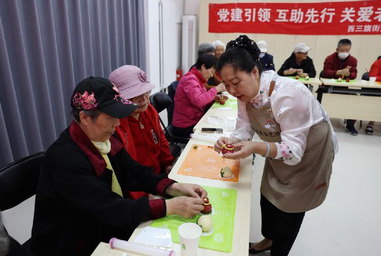 10月23日,街道组织中央厨房开放日活动,邀请社区老人一起制作重阳节花馍。