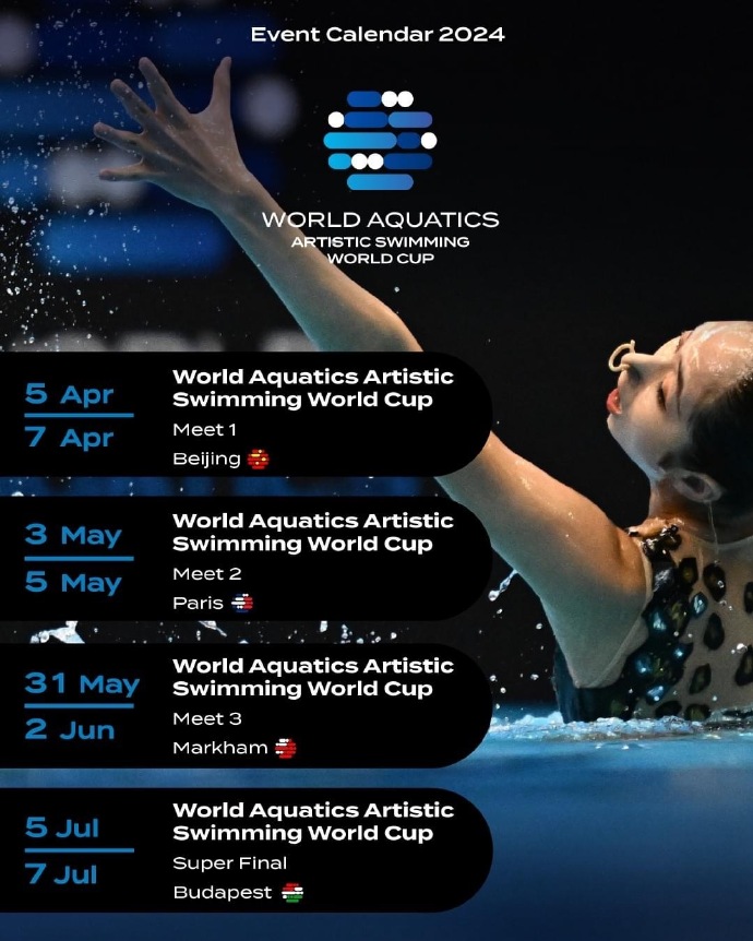 2024年花样游泳世界杯赛程出炉,其中北京站将于4月举行