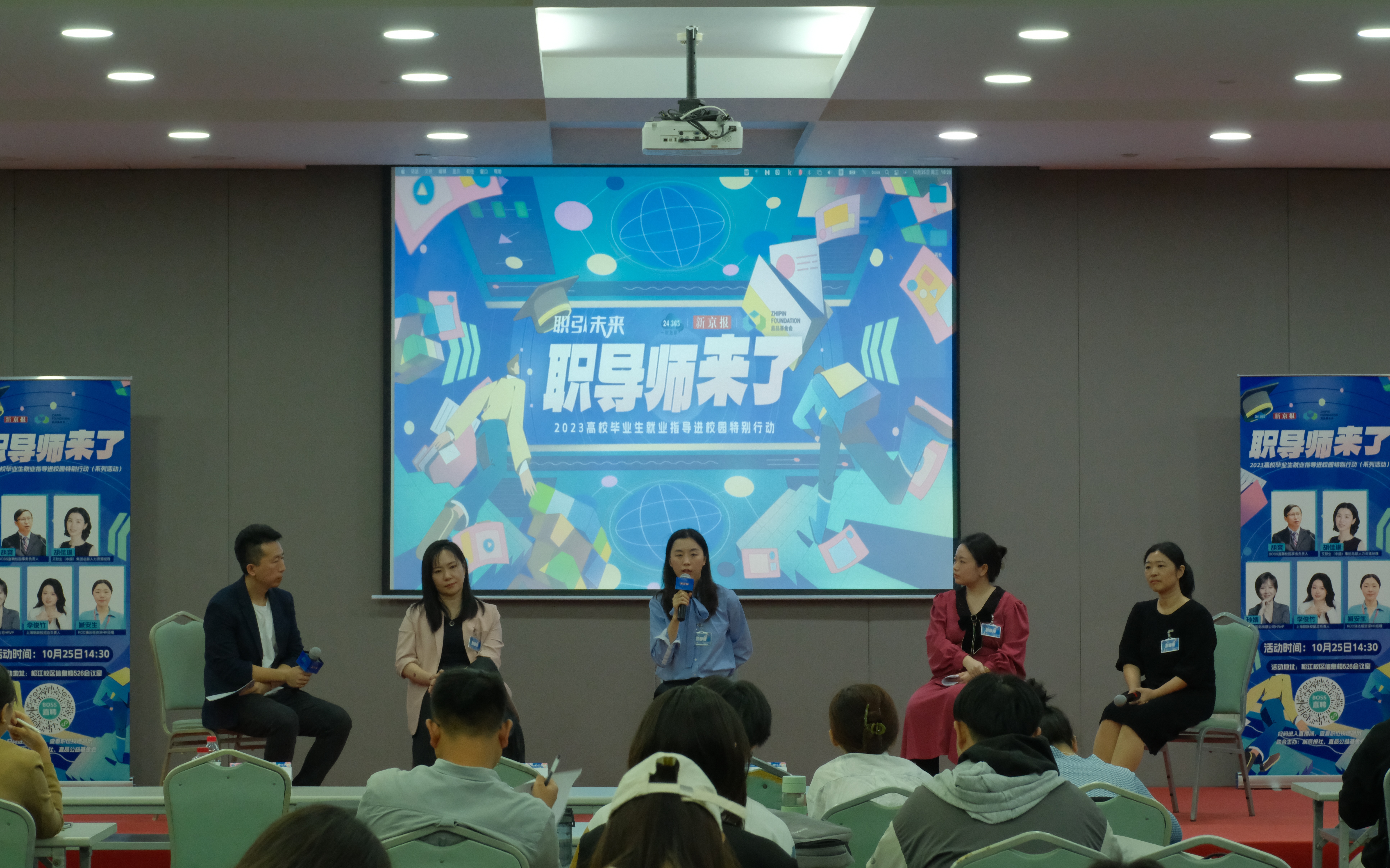 “职导师来了”是由新京报联合直品公益基金会共同发起的进校辅导、岗位对接为一体的求职公益项目,活动期间,邀请企业管理者、行业前辈等走进高校,为学生们带来指点与帮助。