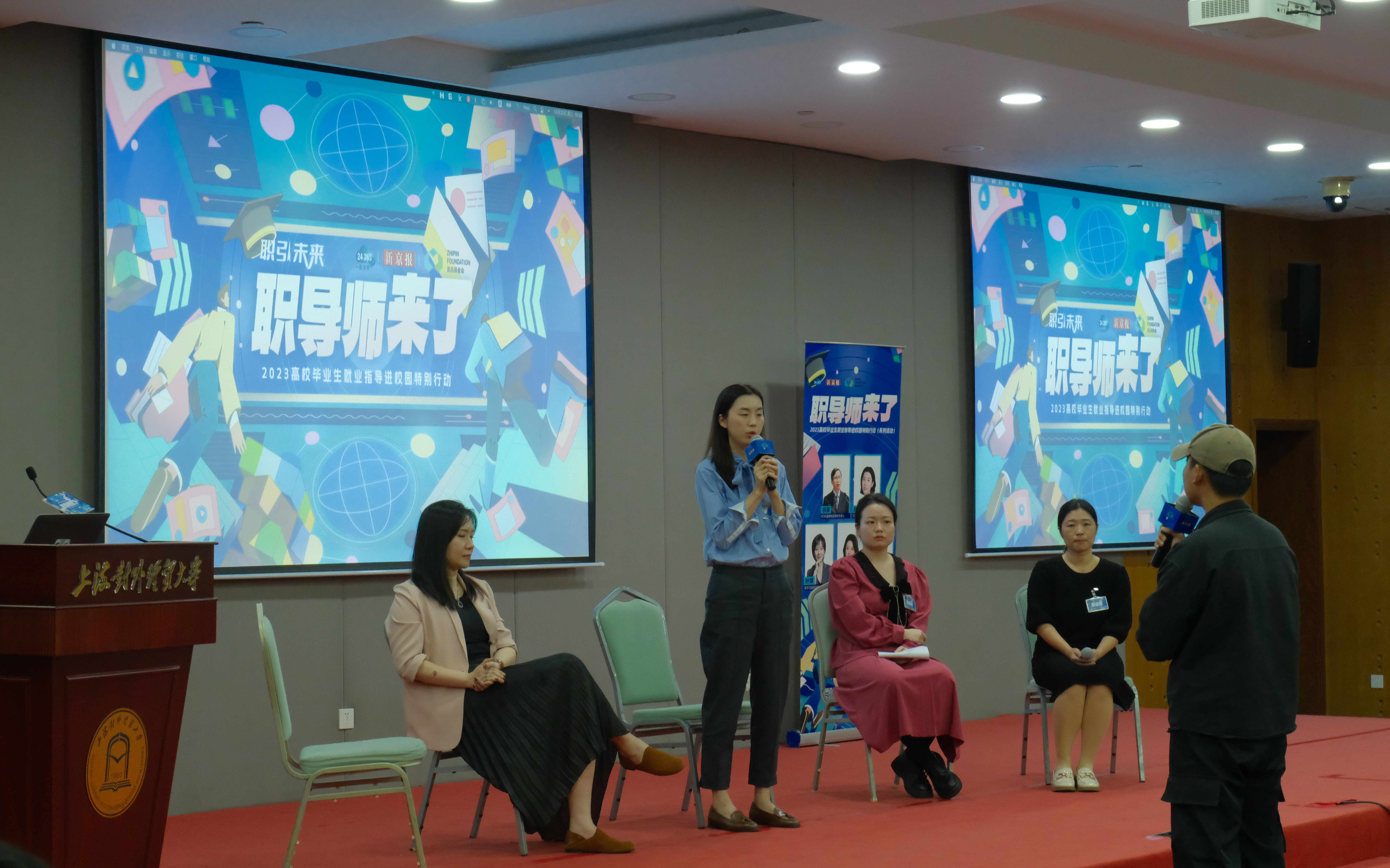 到底先择业还是先就业?怎样打造一份让HR眼前一亮的简历?如何获得一手的职位资讯?针对高校毕业生在“金九银十”中面临的职业发展问题,10月25日下午,由新京报联手直品公益基金会打造的“职引未来·‘职导师’来了——2023高校毕业生就业指导进校园特别行动”走进上海对外经贸大学,就业指导师与企业职导师做客线下会场,跟学生们分享“求职秘籍”。