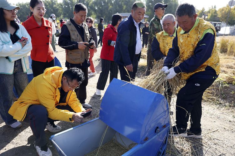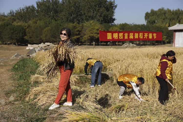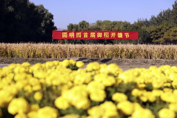 10月27日,圆明园首届御稻开镰节在多稼如云景区举行。今年夏天,圆明园在多稼如云开辟田地种植水稻,还原历史景观,黄澄澄的稻谷随着秋风翻起层层金浪,散发着阵阵清香。