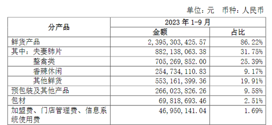 紫燕食品今年前三季度主营业务按产品类别分类情况