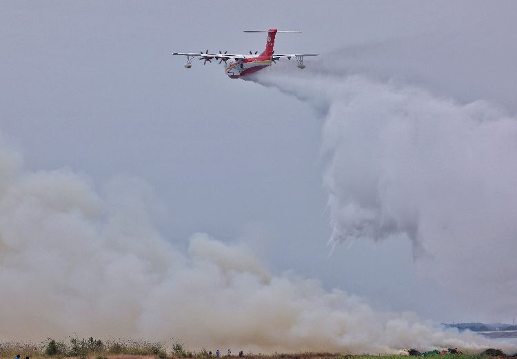 10月27日,航空工业集团在湖北荆门漳河机场组织实施并圆满完成了航空应急救援综合实战演练。此次演练以“打造国家航空应急救援关键力量”为主题,充分展示了近年来我国自主航空应急救援装备体系化发展成果,实战验证了航空应急救援战法研究、科技创新、装备研制、实战应用等科研生产成果,为打造具有中国特色的航空应急救援联合作战体系、提升防灾减灾救灾处置保障能力、创新航空灭火等应急救援实战模式、锤炼航空应急救援综合力量、完善航空应急救援标准规制做出了积极的探索实践。 图为AG600M 灭火机精准灭火。