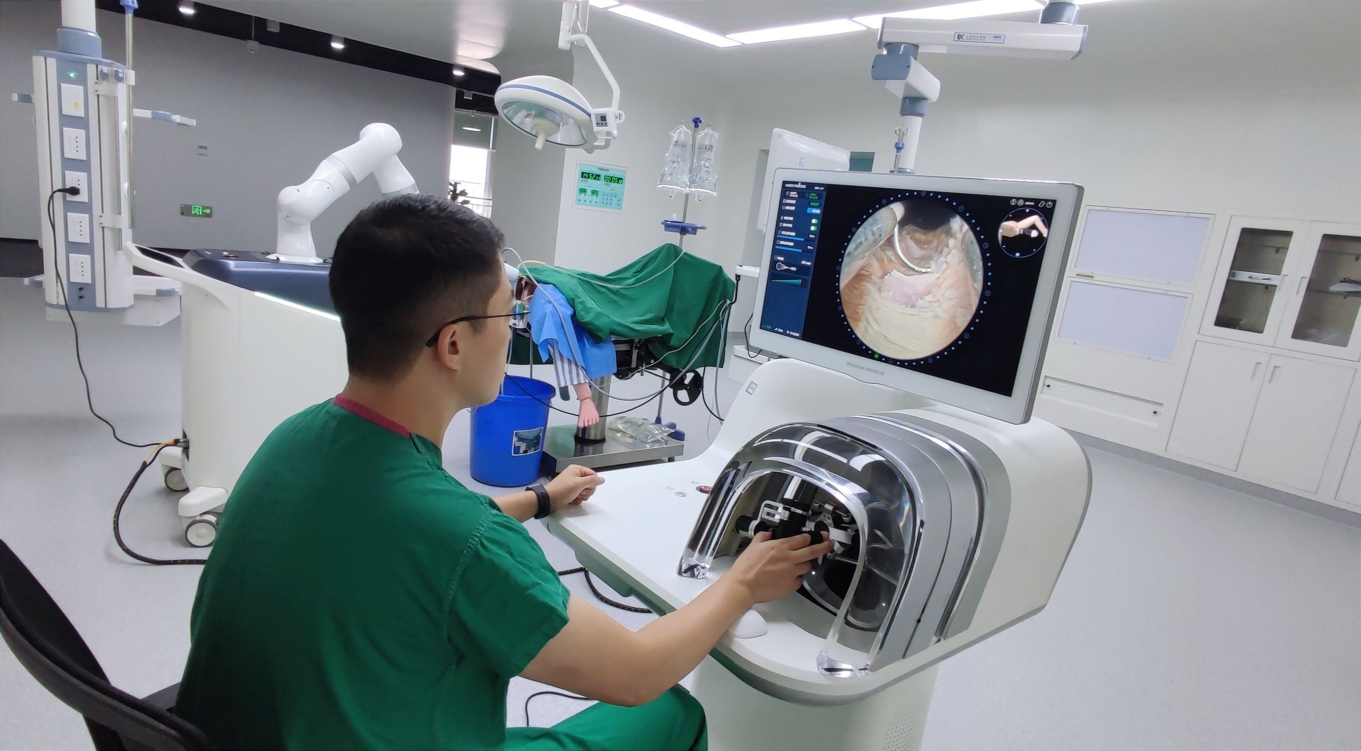据该公司总经理白云介绍,经自然通道手术机器人项目为全国首创,核心技术全部自主研发完成,已授权专利涵盖了泌尿外科、经自然通道手术机器人的各个领域,并已成功研发经自然通道手术机器人系列产品。“它不仅能够进行手术全过程操作,还具备5G远程功能,如果需要专家远程协助,可随时切换手术场景,进行远程操作。目前,我们这款手术机器人已经在北京协和医院等4家临床医院进行临床试验工作。”