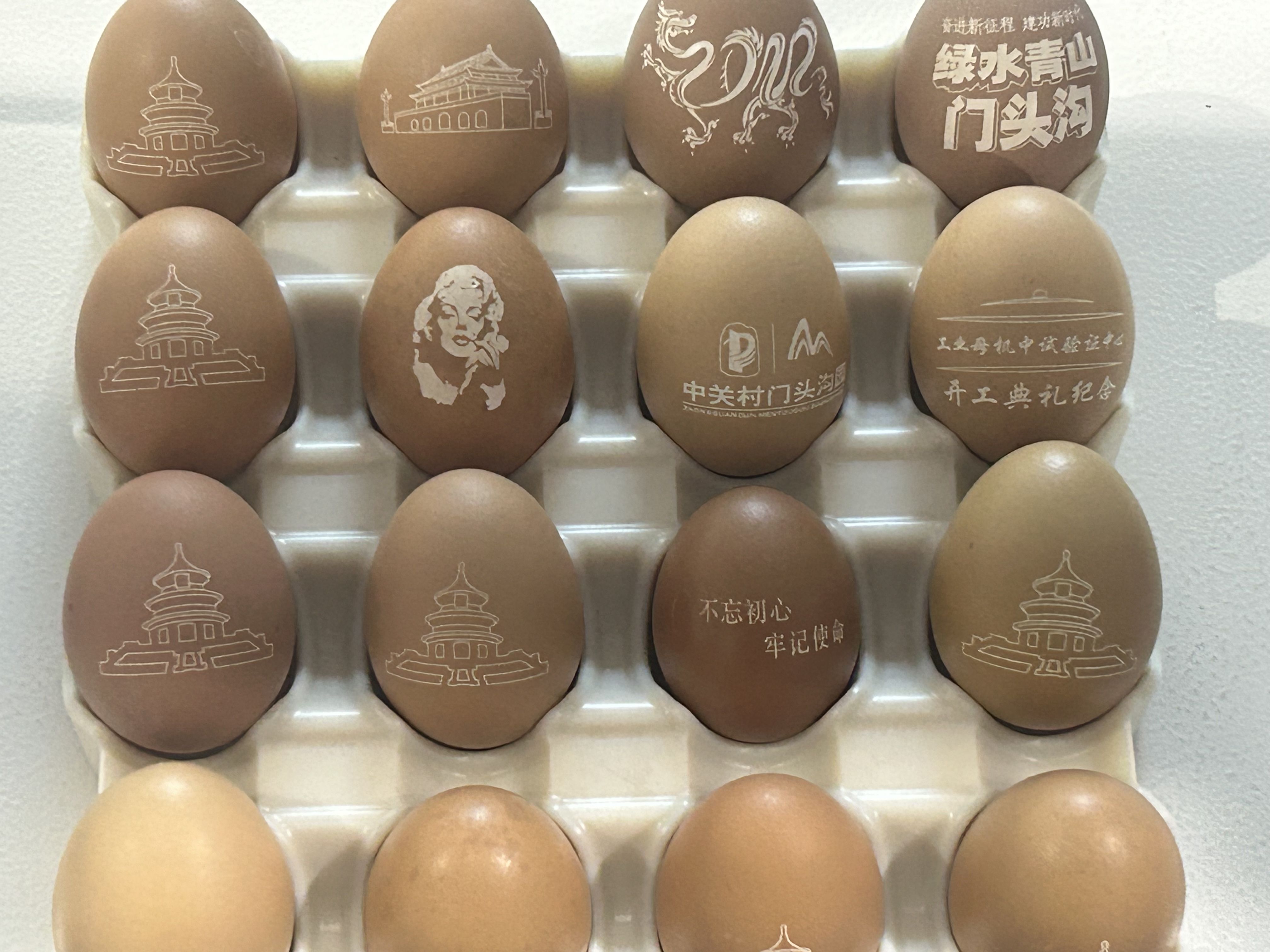 这些鸡蛋上的图案都是由数控机床雕刻出来的。新京报记者 陈琳 摄