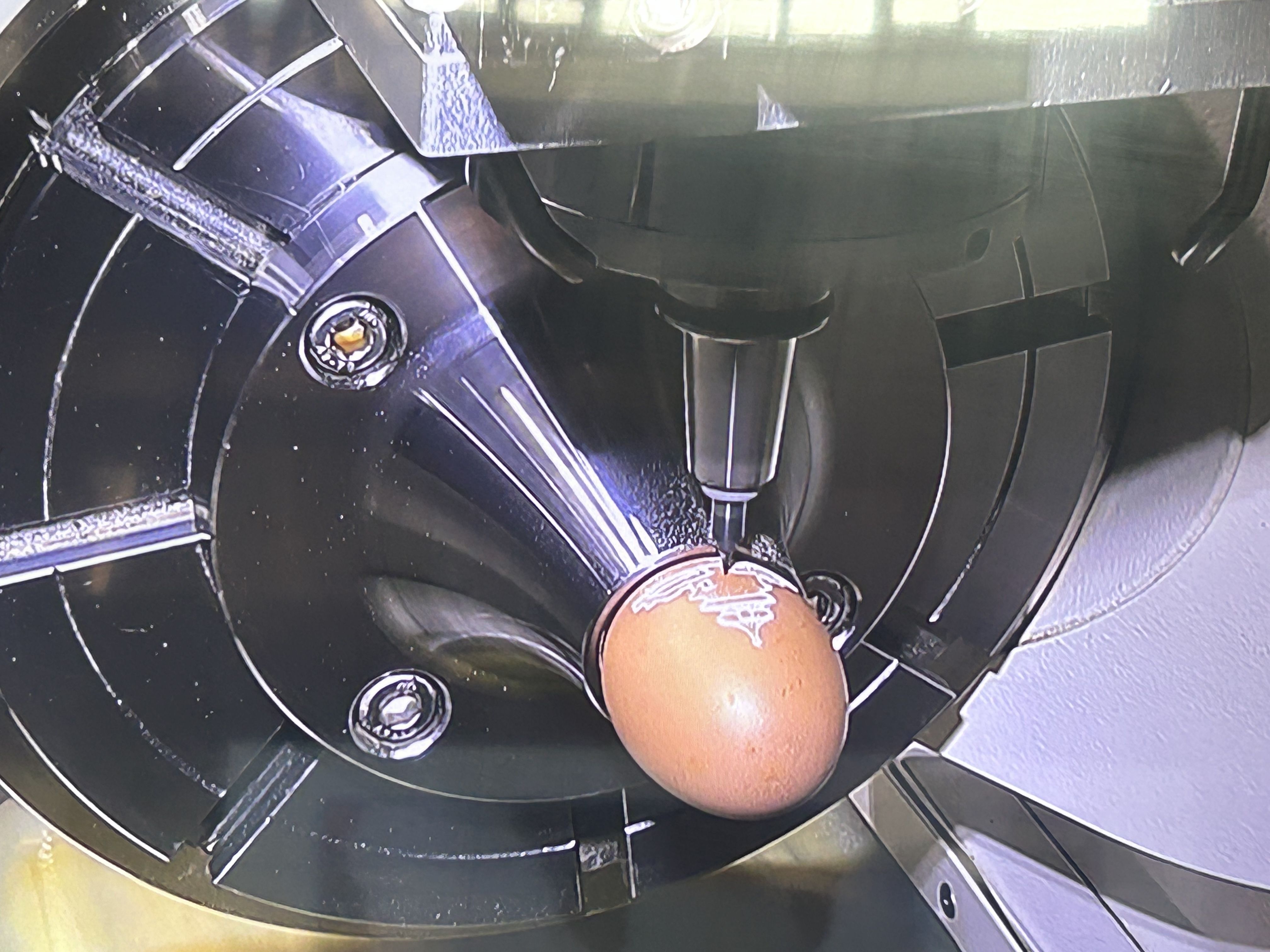 精雕集团内,数控机床正在鸡蛋上“雕花”。新京报记者 陈琳 摄