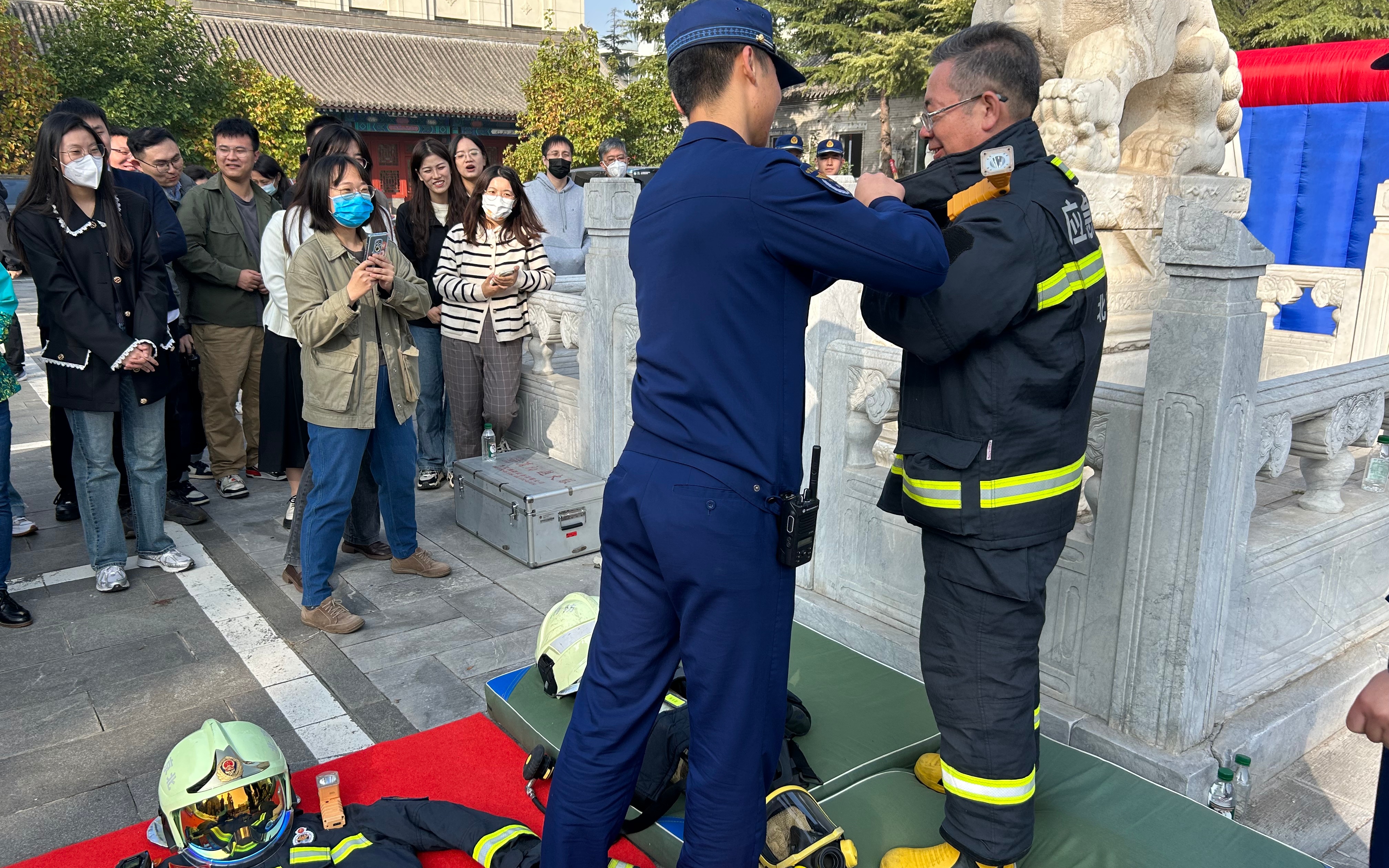 新京报讯(记者 彭镜陶)10月30日,北京市西城区消防救援支队在中国教育发展基金会举行消防科普活动和消防演练。新京报记者了解到,为迎接即将到来的消防救援月(11月),西城消防策划了一系列科普活动,本次科普是“消防活动进部委机关”的首场活动。