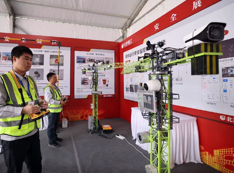 工作人员展示塔机运行安全监控系统。