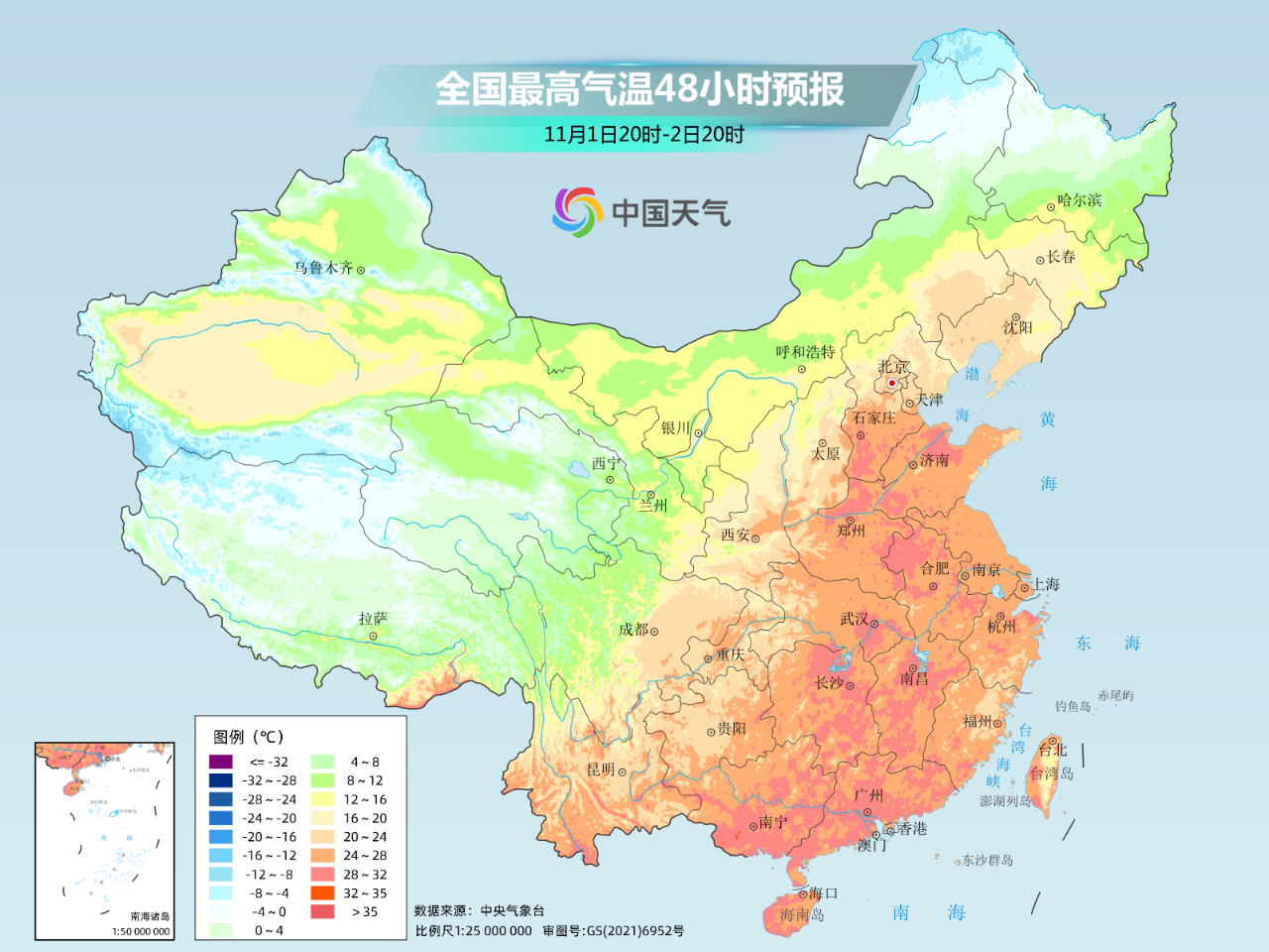 这股暖热有多异常?常年10月下旬至11月上旬,最高气温25℃线大致位于华南一带。今年由于冷空气的“懈怠”,这股暖热足足北抬了上千公里。以山东济南为例,常年11月上旬平均最高气温为16.6℃,今日的最高气温却在28℃左右。