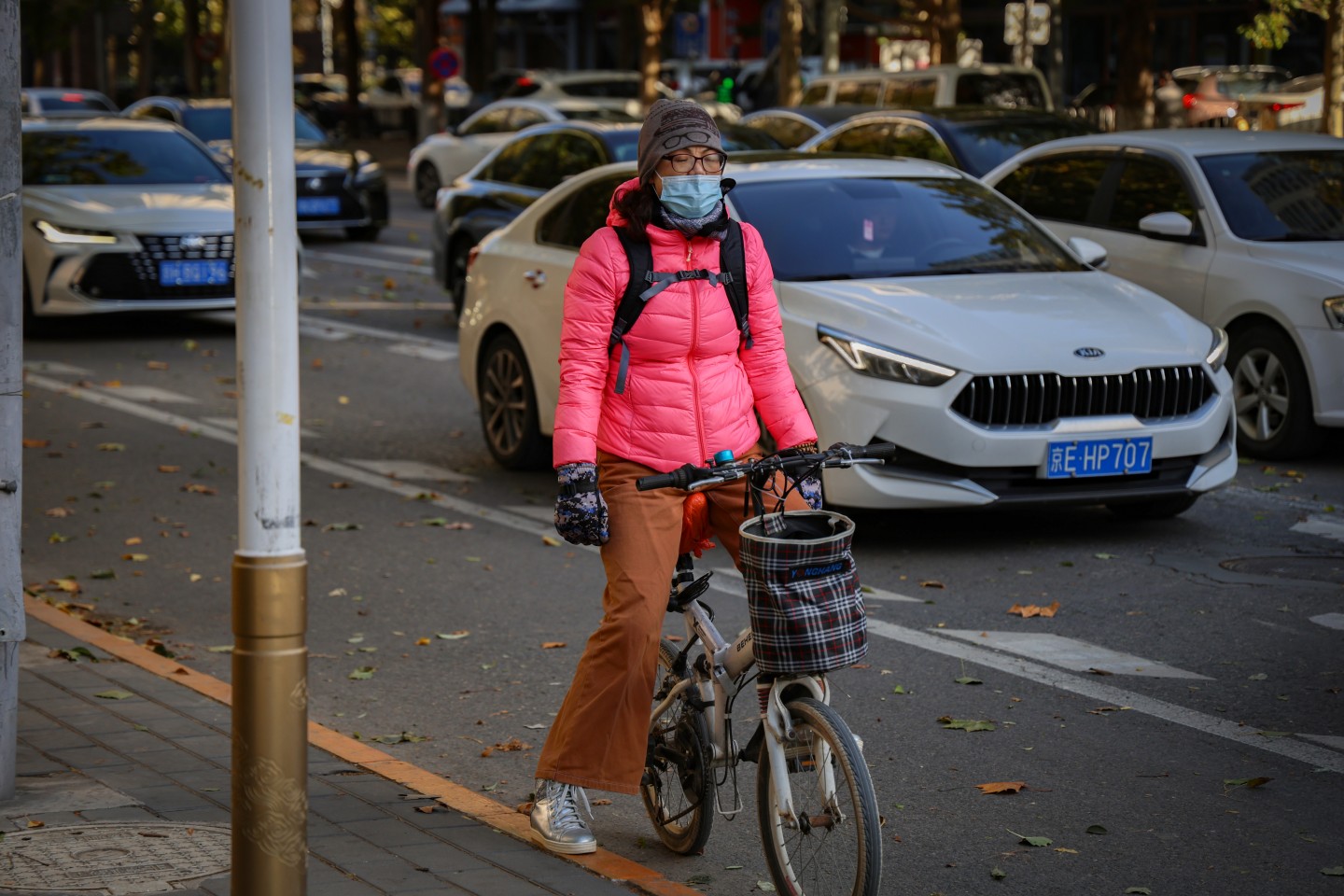 11月6日,朝阳路,骑车人等待红灯。 新京报记者 王远征 摄
