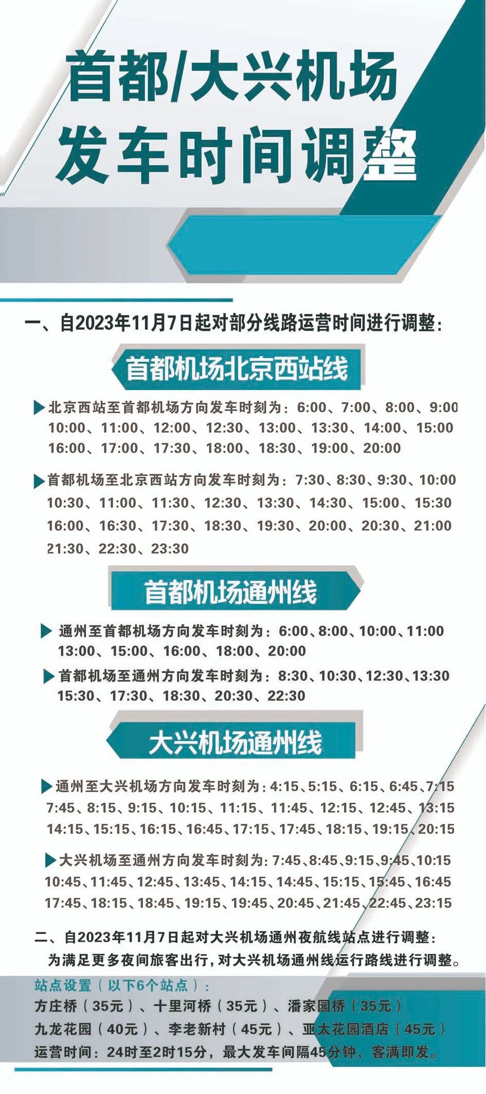 首都机场北京西站线、通州线和大兴机场通州线运营时间调整