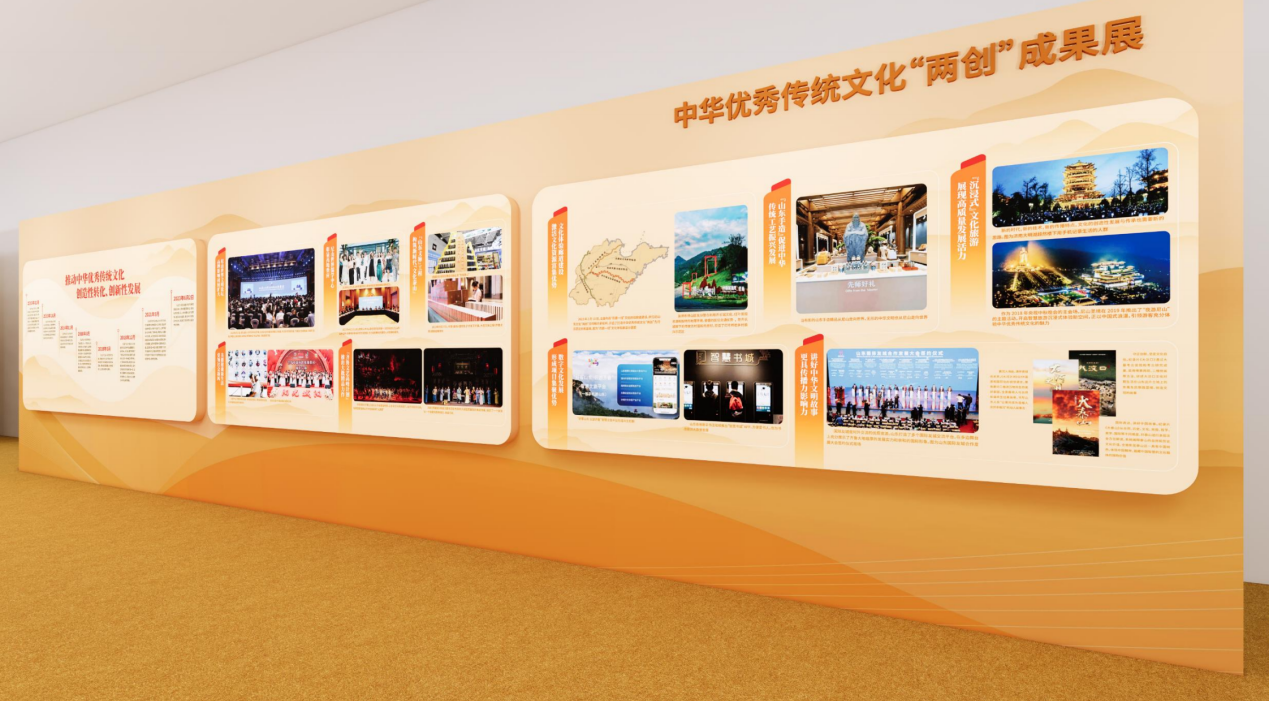 2号馆西南区域文化“两创”成果展区,展现山东文化“两创”十年来的探索历程、重大成就和标志性成果,选取“山东手造”优选100产品及优秀手造产品进行展示展销,近距离、立体化地展现“山东手造”之于文化、之于产业、之于生活的重要意义。
