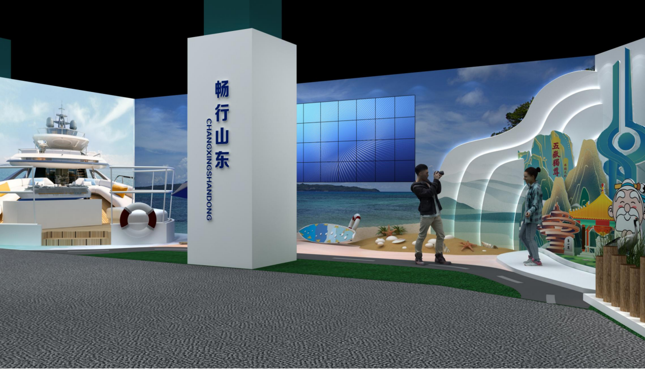 9号馆“好客山东”精品文旅展区,展销“山东手造·优选 100”入选产品、山东特色文旅商品,包括旅游食品、文创产品和特色数字文旅产品,借助 VR、AR、虚拟现实等数字手段,沉浸式、多维度、深层次展示山东文旅新貌。