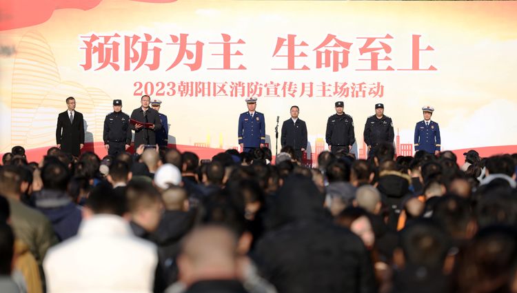 11月8日,朝阳区在望京SOHO举办朝阳区2023年消防宣传月启动仪式暨区域联防灭火救援演练。望京街道、公安派出所、区消防救援支队亚运村大队、望京地区消防自防自救力量、望京SOHO企业员工、地区消防志愿者、市民群众代表共1000余人参加活动。