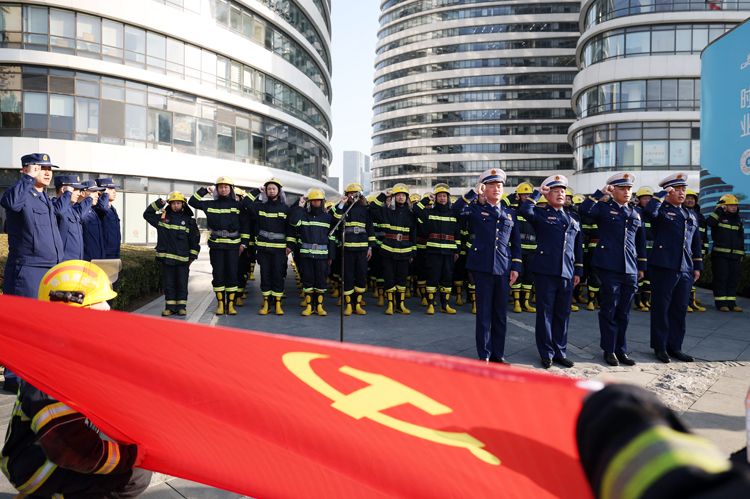 朝阳区消防救援支队亚运村大队全体指战员宣誓。