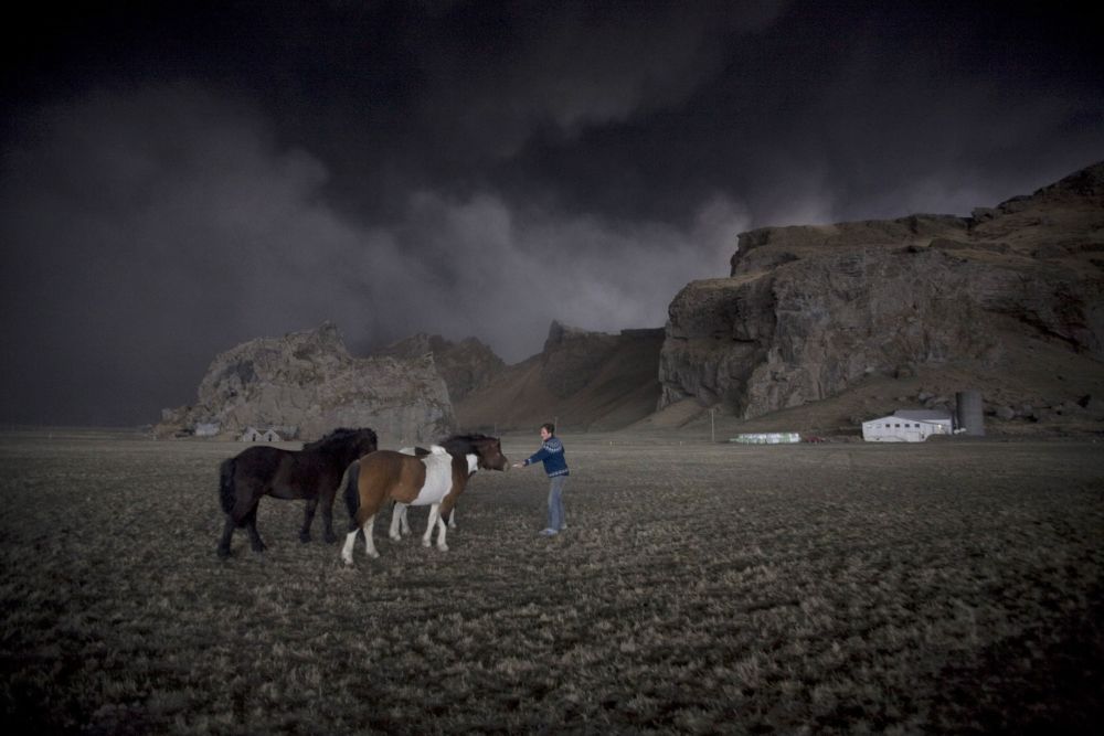 这是2010年4月17日,农夫索拉林·奥拉夫松在冰岛一处农场里安抚他的马匹免受夹杂火山灰的乌云惊扰。2010年4月14日,冰岛第五大冰川——埃亚菲亚德拉冰盖冰川下一座火山喷发。新华社发