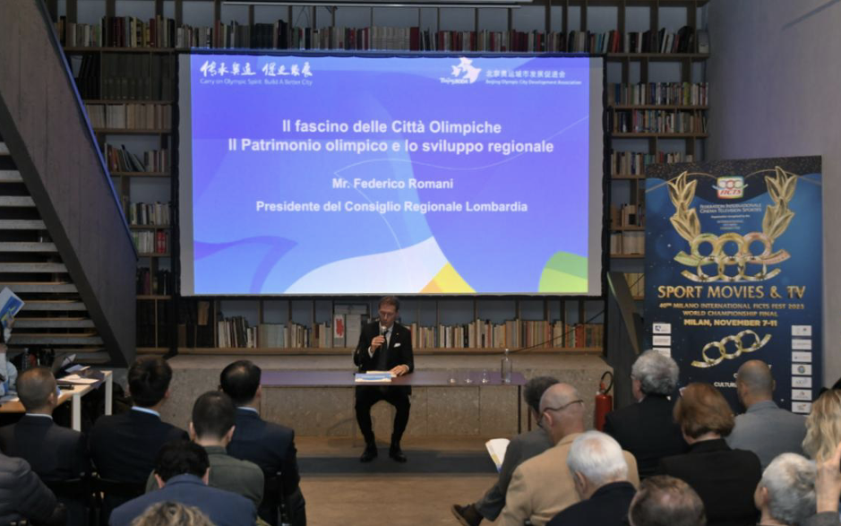 米兰时间11月9日,北京奥运城市发展促进会在米兰布雷拉国际中心举办“奥运城市的恒久魅力,以奥运遗产带动区域发展”主题研讨会。北京奥运城市发展促进会供图