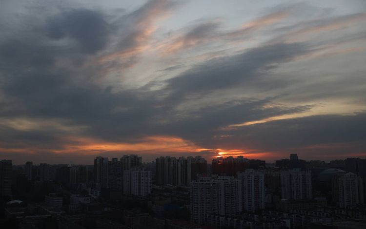 11月11日早上七时,太阳初升,开启了灿烂多云的一天。北京周末两天(11月11日至12日)天气晴冷,最高气温6℃至7℃,最低气温零下2℃至零下3℃,公众请注意防寒保暖。
