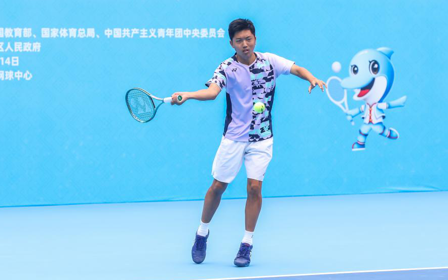 学青会网球男单决赛,白文博轻取对手摘金。 北京市体育局供图