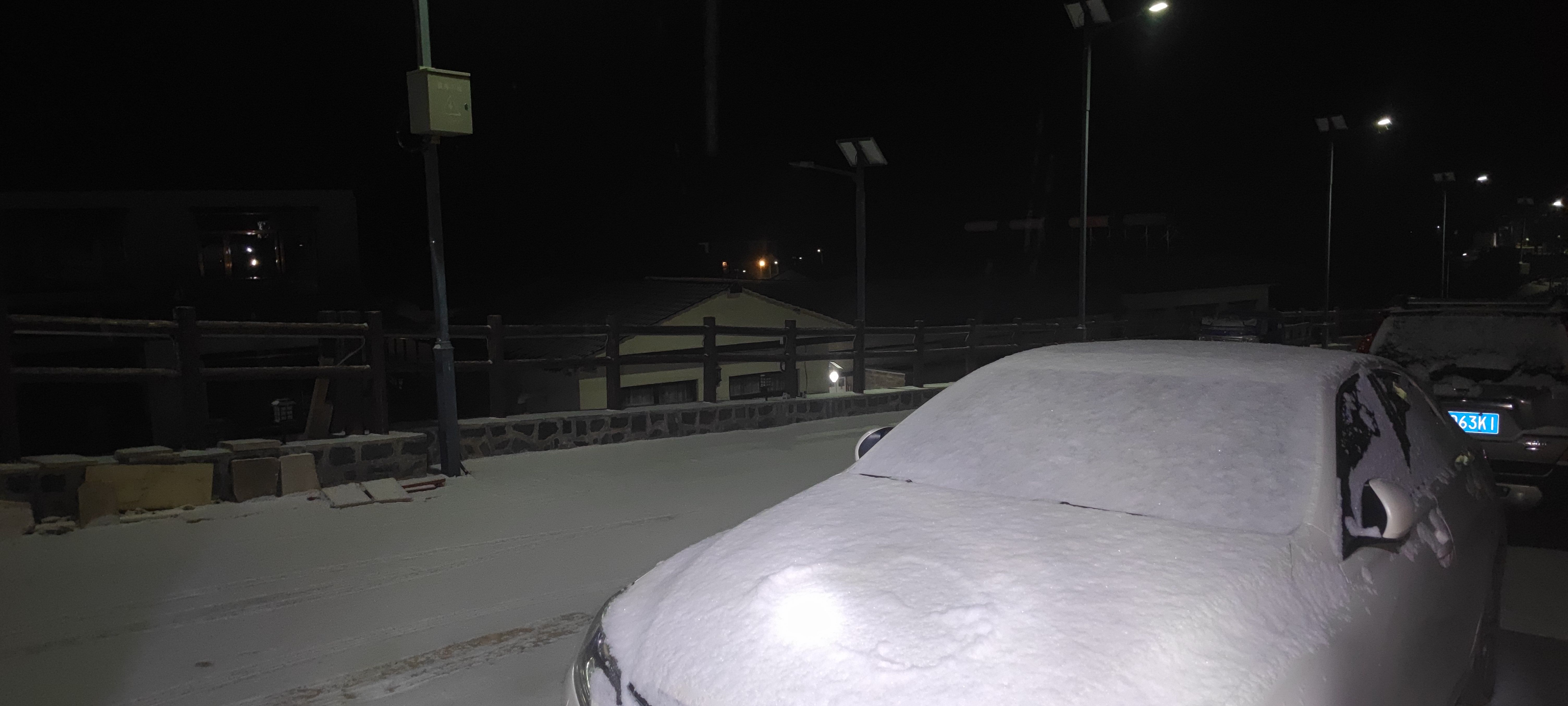到晚上10点多的时候,雪开始变小,零散飘着雪花。据了解,江水河是门头沟最西边的村庄,距离门头沟城区100公里左右,村口最低海拔1440米,平均海拔1500米左右,是北京海拔最高的行政村。据介绍,这已经是灵山区域今年的第三场雪,前两次都下在山顶,村里下的是雨,这一次村里也开始下雪。