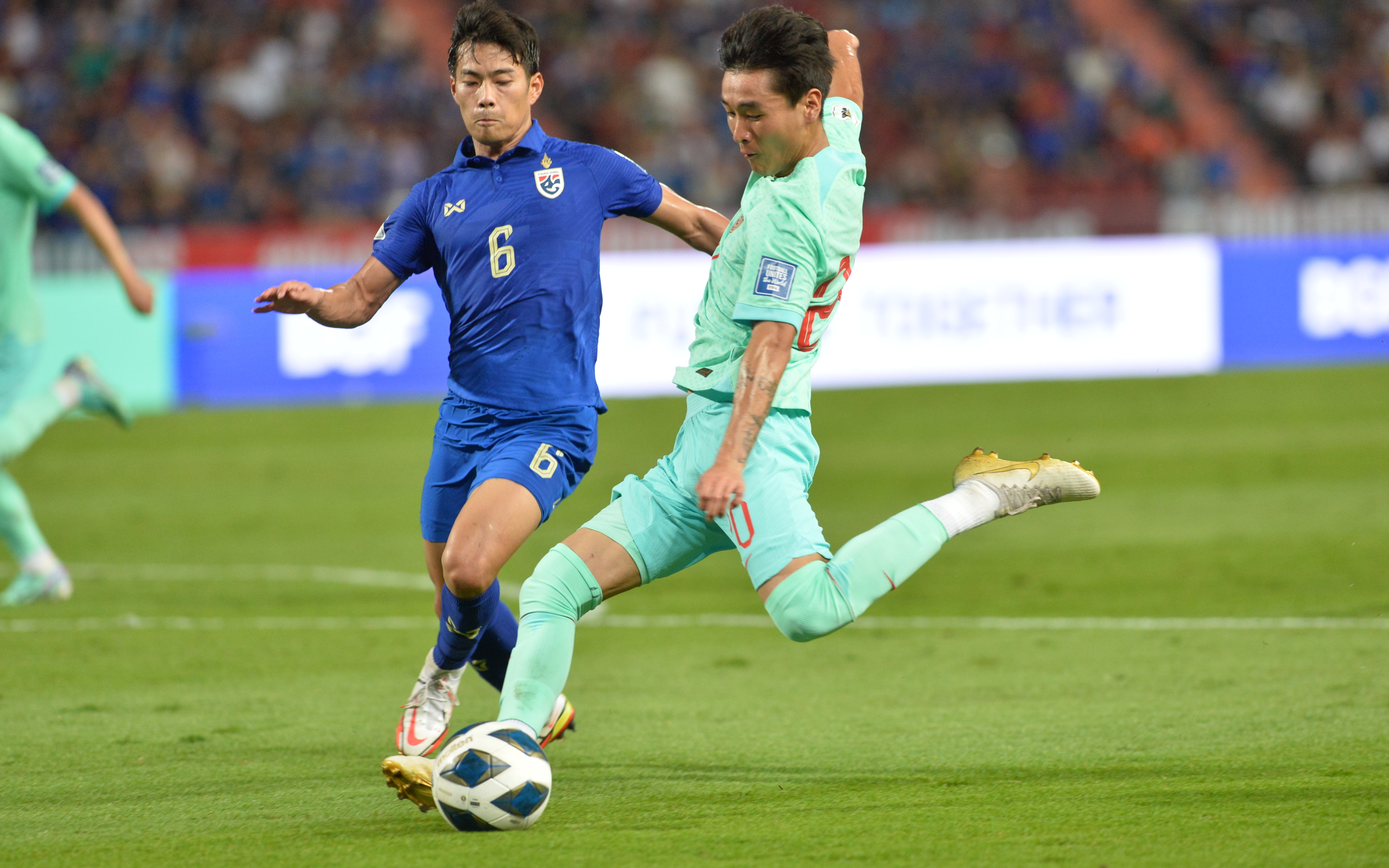 这一次站出来稳定军心的是韦世豪。在国足失球7分钟后,他在前场反抢成功,突入禁区后送出传球,武磊将比分扳平。第38分钟,韦世豪在上演人球分过后再次长途奔袭,可惜他在禁区外的射门稍稍偏出。第45分钟,韦世豪送出直塞球,可惜武磊单刀不进。上半场比赛中,韦世豪活跃在泰国防线肋部,以极具威胁的个人突破撑起了国足的进攻。