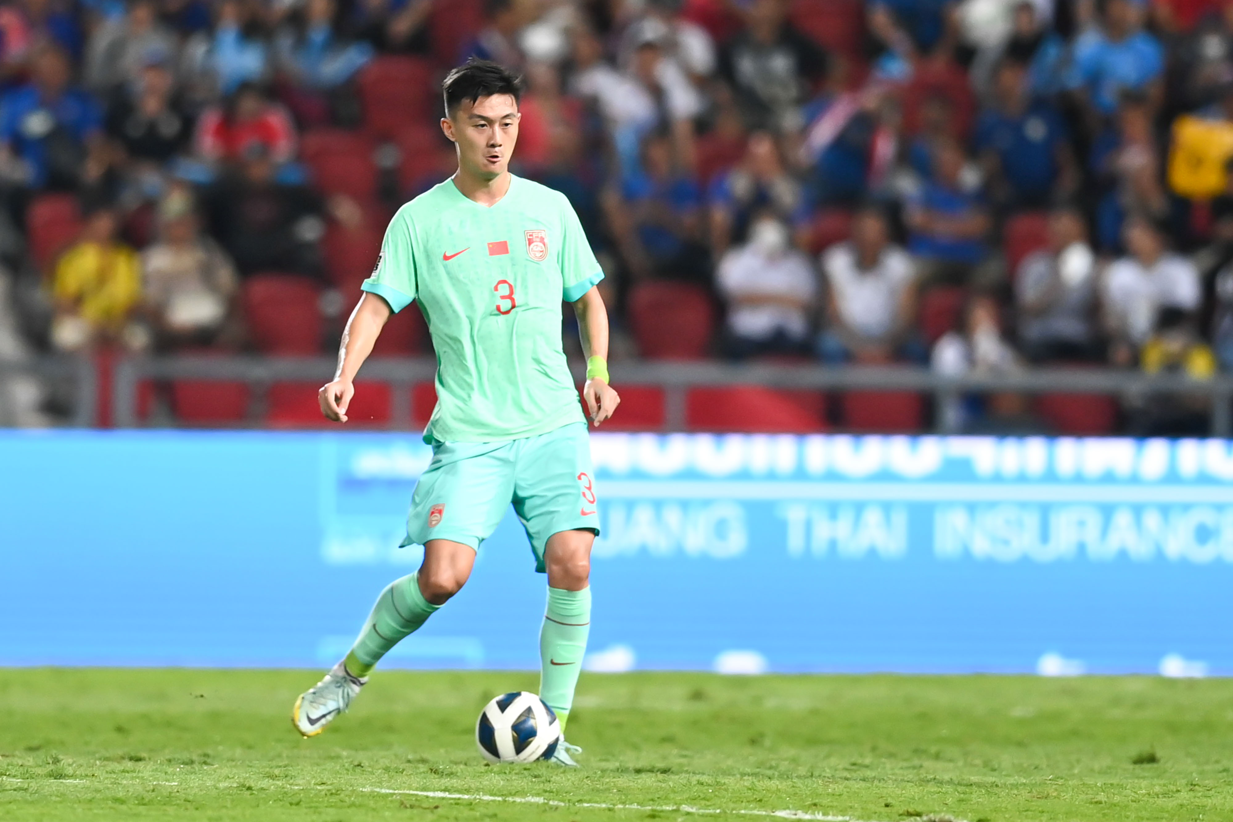 第55分钟,泰国队核心颂克拉辛疾速突破,蒋圣龙冒着吃黄牌的风险,伸脚放倒对手,化解了险情。第86分钟,拼到抽筋的蒋圣龙被吴少聪换下,这是两位00后中卫的对位调整。