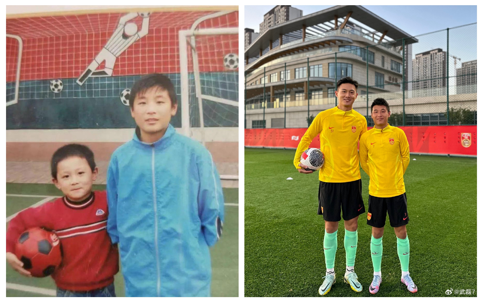 蒋圣龙和武磊今昔对比图。 图/武磊微博