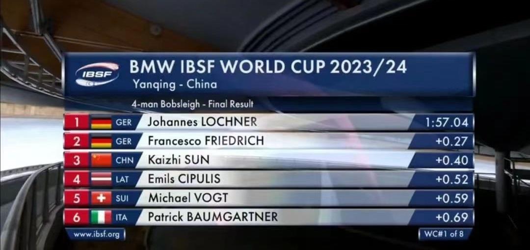 创历史!中国四人雪车首获世界杯奖牌