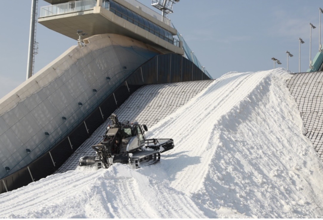 与其他临时搭建的场地不同,首钢滑雪大跳台是全球首个永久性保留和使用的大跳台比赛场地,能够满足压雪车在赛道施工的承重要求,也开创了压雪车铺设大跳台赛道的先河。