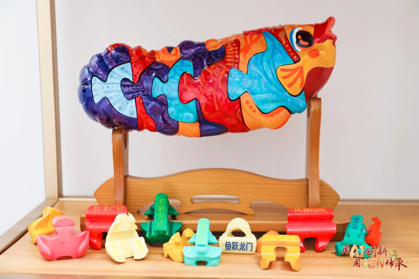文创产品开发赛道,延续了传统与现代、科技与时尚、创新与实用的多元特质,涌现出众多形式多样、新奇有趣的文创产品。其中,赛道冠军项目“琉璃重焕新生”,把中华传统文化和门头沟琉璃文化活化利用,设计推出屋脊兽哨子、龙吻笔架、椒图门环冰箱贴等产品。此外,由高校学生组成的“鱼来运转”项目团队也表现突出,团队以潭柘寺石鱼为原型,设计出榫卯结构的拼插玩具,并印制有祝福和吉祥的文字,让人们在休闲娱乐中感受传统文化的魅力。