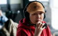 旅客在飞机上与朋友视频通话。