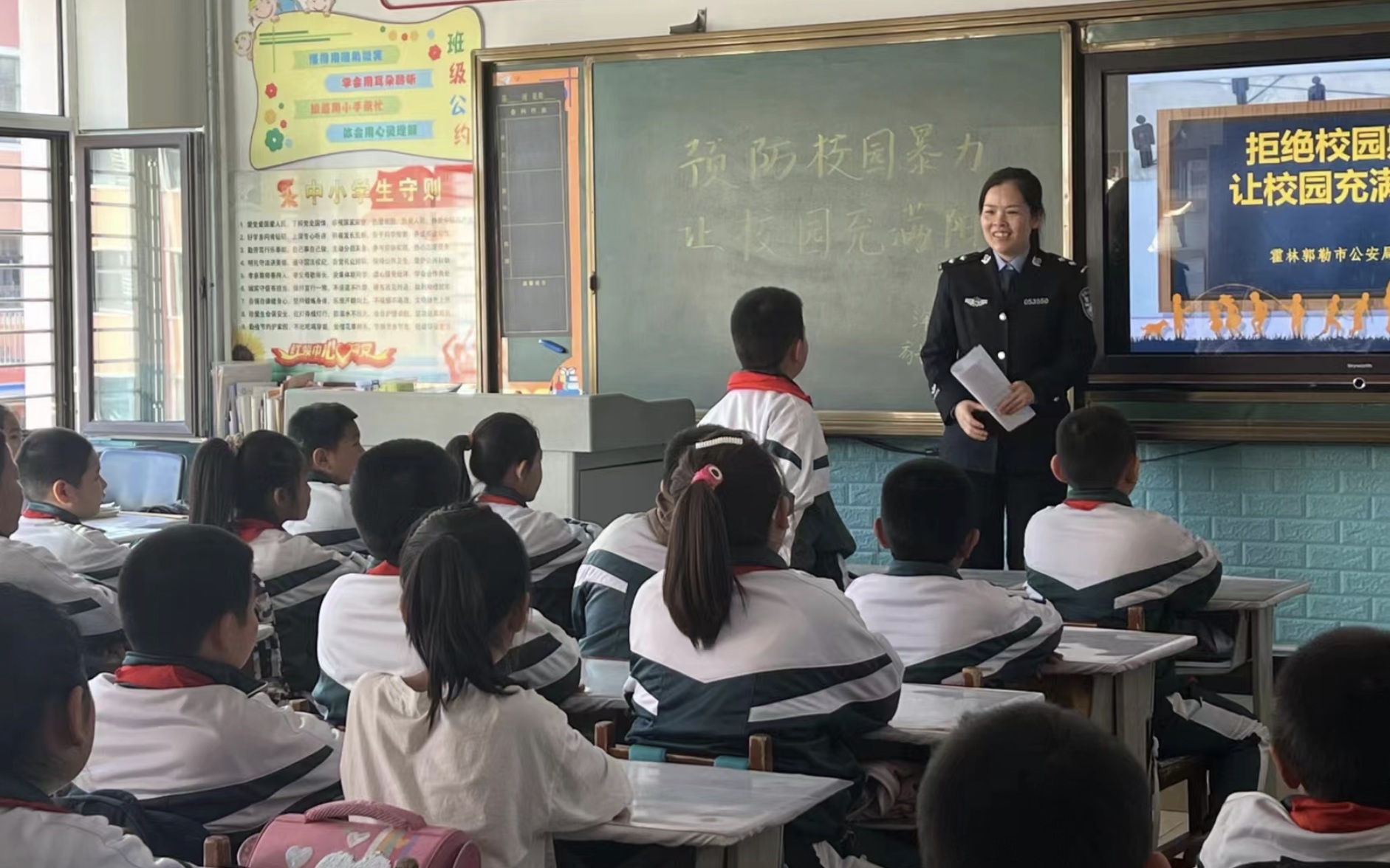 民警进校园进行安全宣讲。 图源:霍林郭勒市公安局