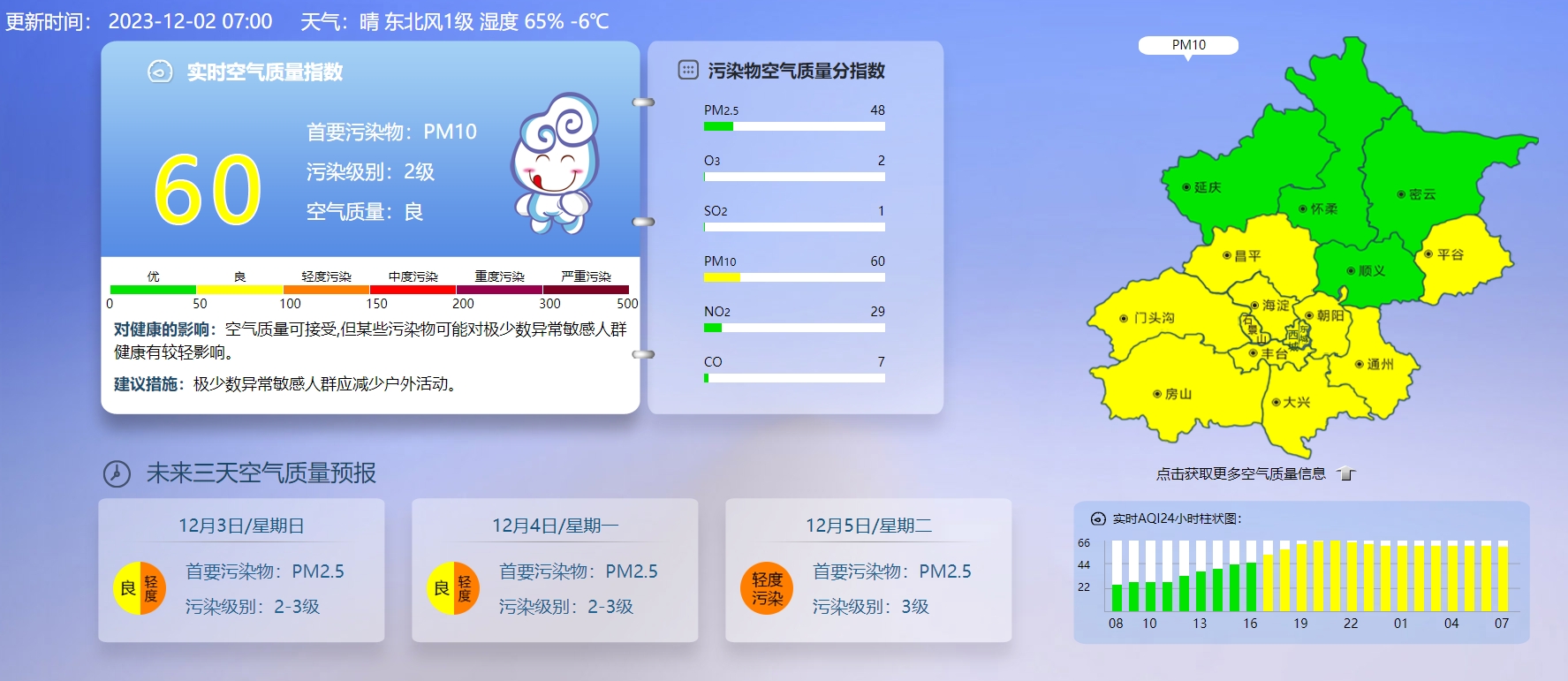 据北京市生态环境监测中心今早7时数据,目前实时空气质量指数60,首要污染物PM10,污染级别2级,空气质量良。