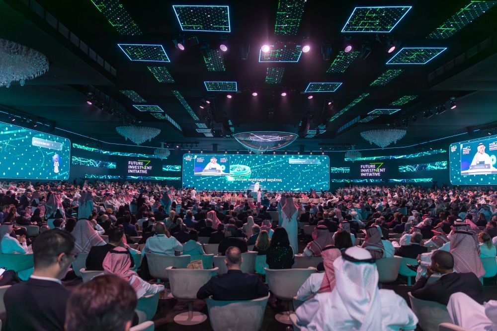 10月24日,在沙特阿拉伯首都利雅得,与会人员在第七届沙特“未来投资倡议”大会会场观看开幕式。新华社发(“未来投资倡议”大会供图)