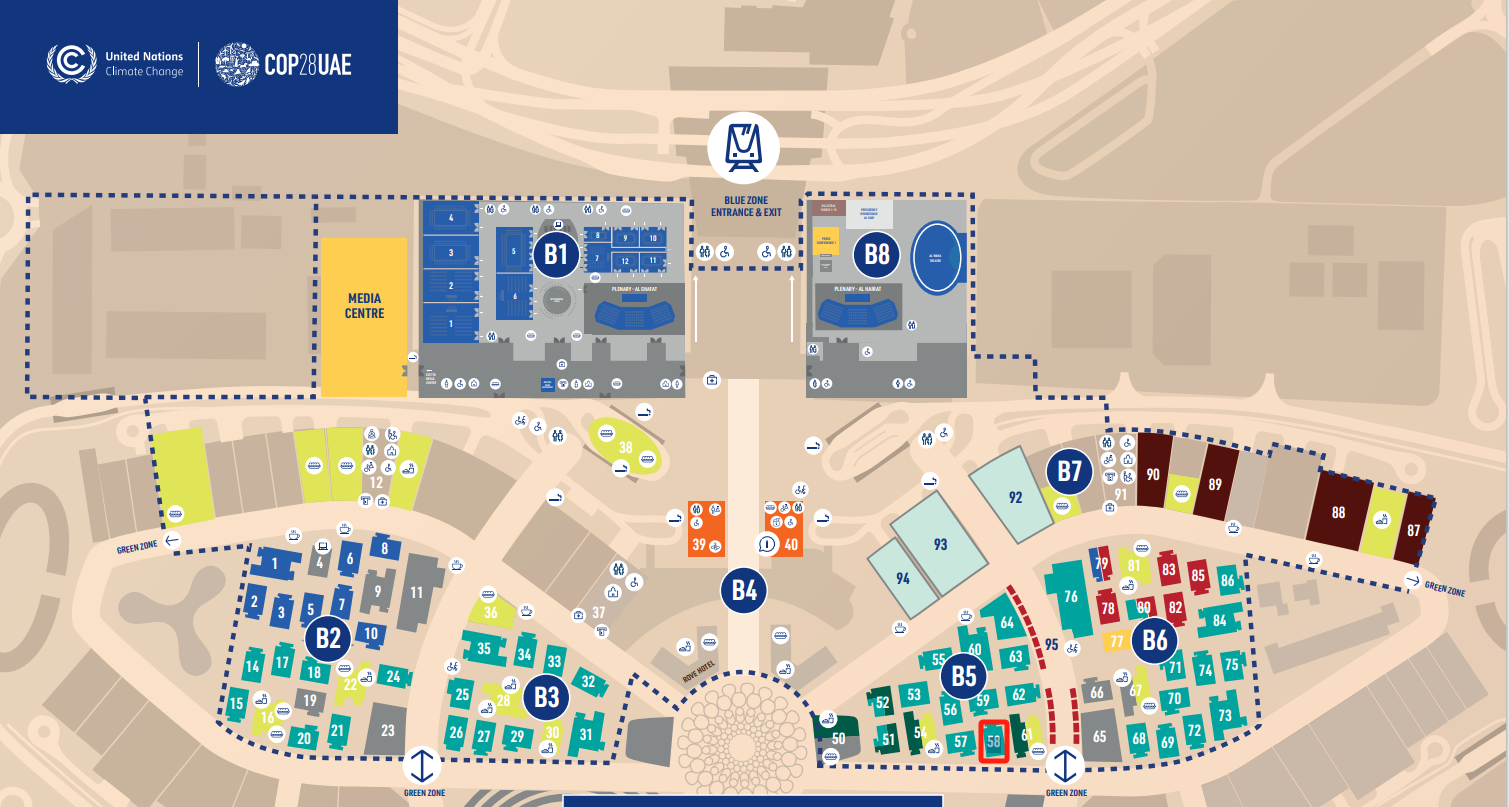 蓝区是由联合国管理的谈判场所,是各国代表开会协商和非正式磋商的地方,向经认证的缔约方和观察员代表开放。在这里举行为期两周的正式谈判,以及世界气候行动峰会、国家馆、主席国活动和数百场会外活动,包括小组讨论、圆桌会议和文化活动都将在这里进行。