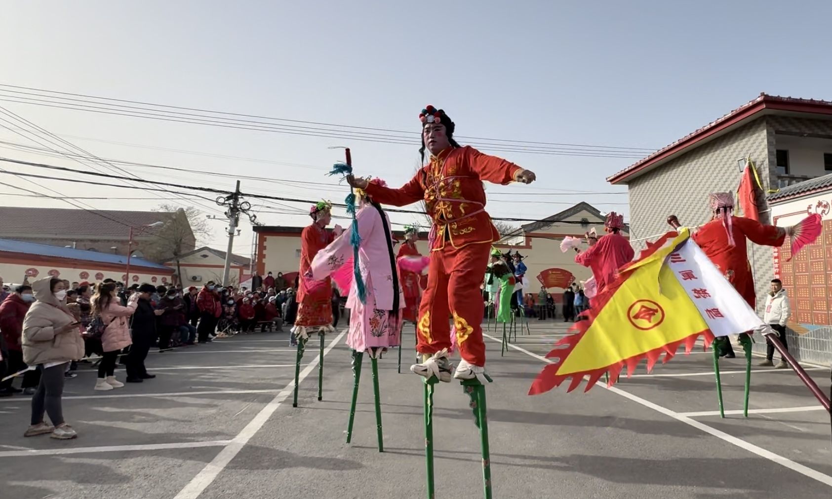 榆垡镇的高跷会吸引了村民驻足观看。新京报记者 耿子叶 摄