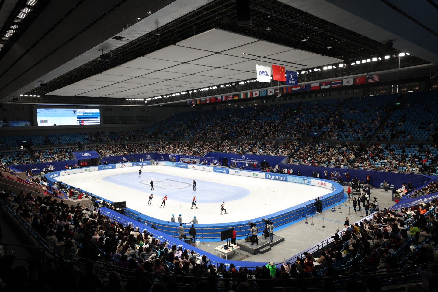 国际滑联短道速滑世界杯北京站在首都体育馆举行,现场座无虚席。 新京报记者 王飞 摄