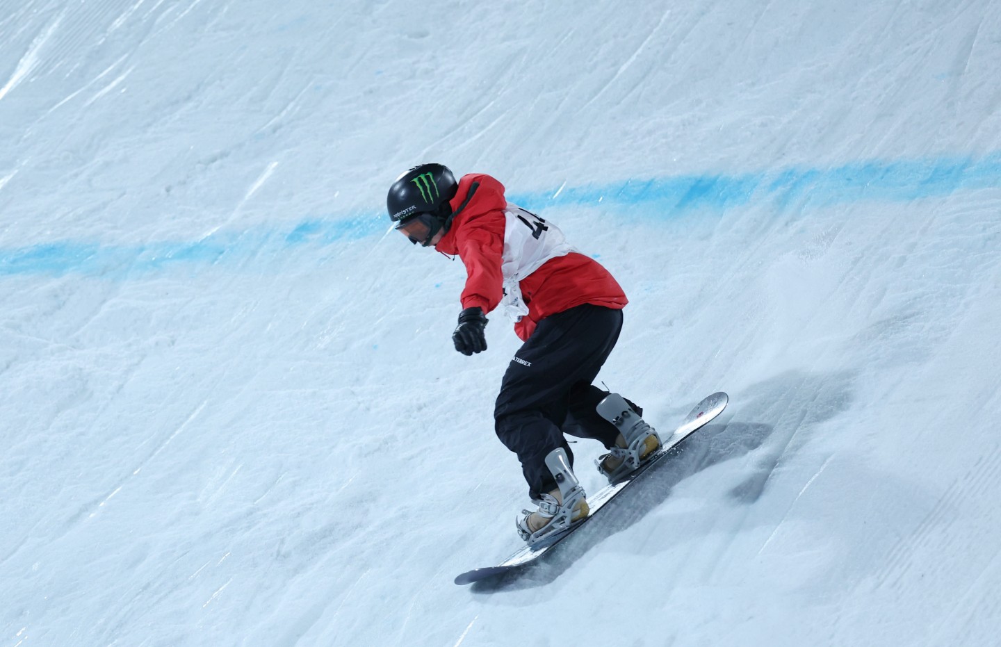 在首钢大跳台举行的国际雪联单板及自由式滑雪大跳台世界杯中,回到“福地”的苏翊鸣获得了男子单板冠军。 新京报记者 王飞 摄
