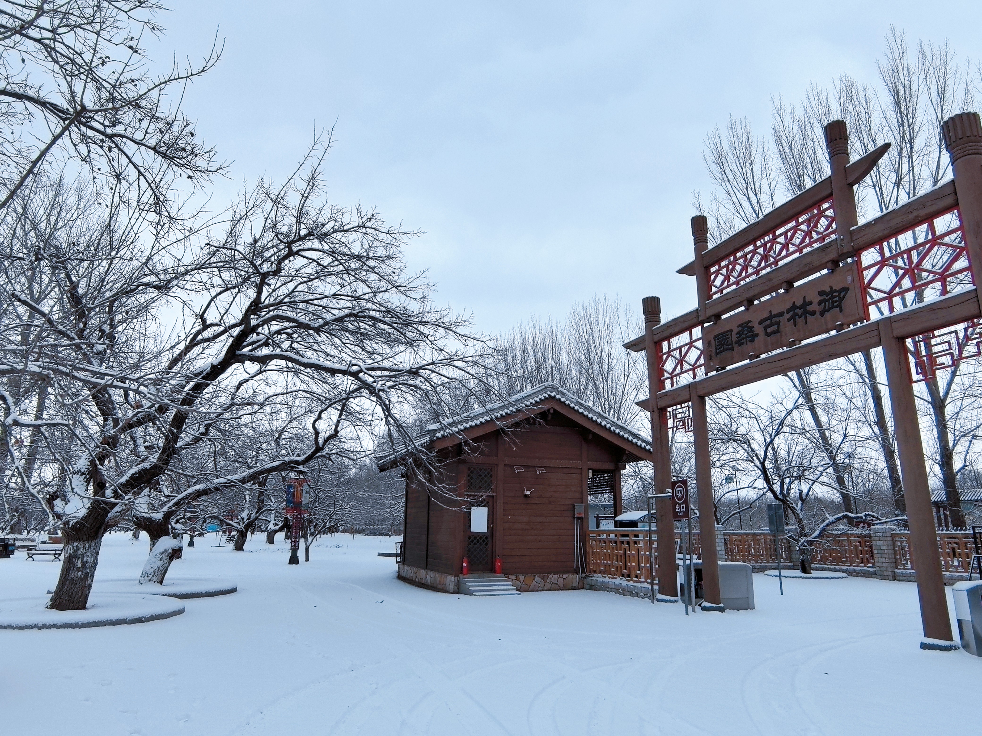 12月10日,北京迎来了今冬“初雪”,雪后的大兴区安定镇御林古桑园银装素裹。安定镇供图