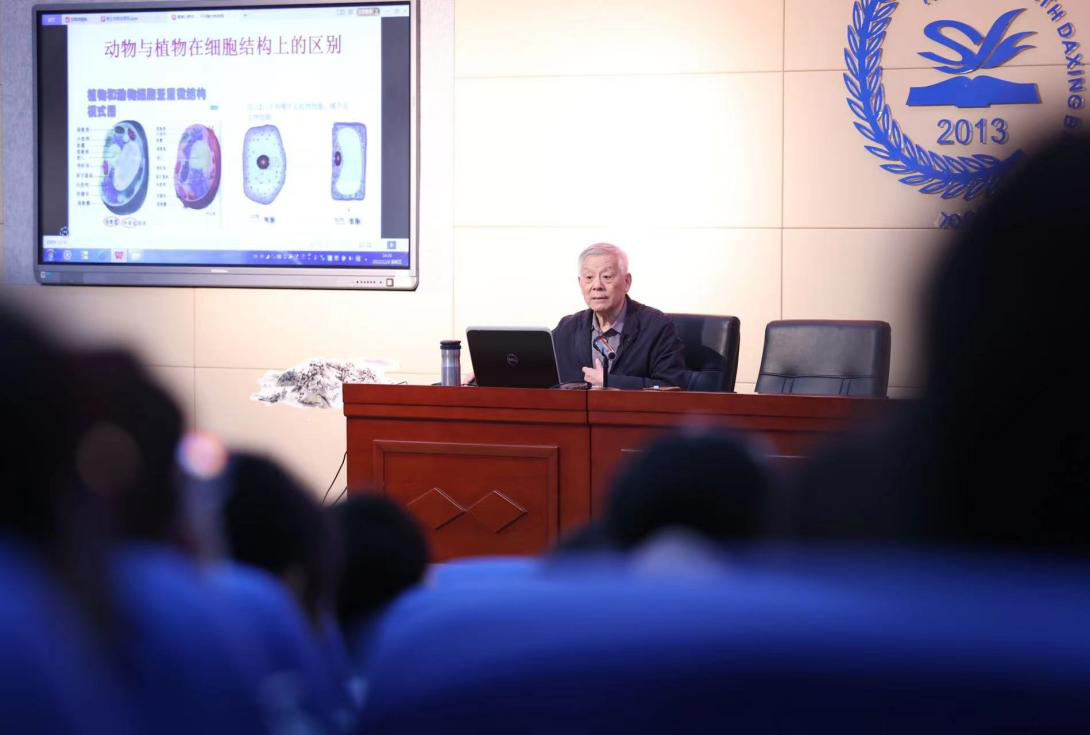 此后他向大家讲述起科学与科研精神。他认为,为满足人类生存发展的需要,每一个学科都有其难点需要攻克,有创新需要突破。学科与学科之间互不可替代,人类社会需要多学科共同发挥作用。好比数学与物理学密不可分,生物学与免疫学、微生物学也相互关联。